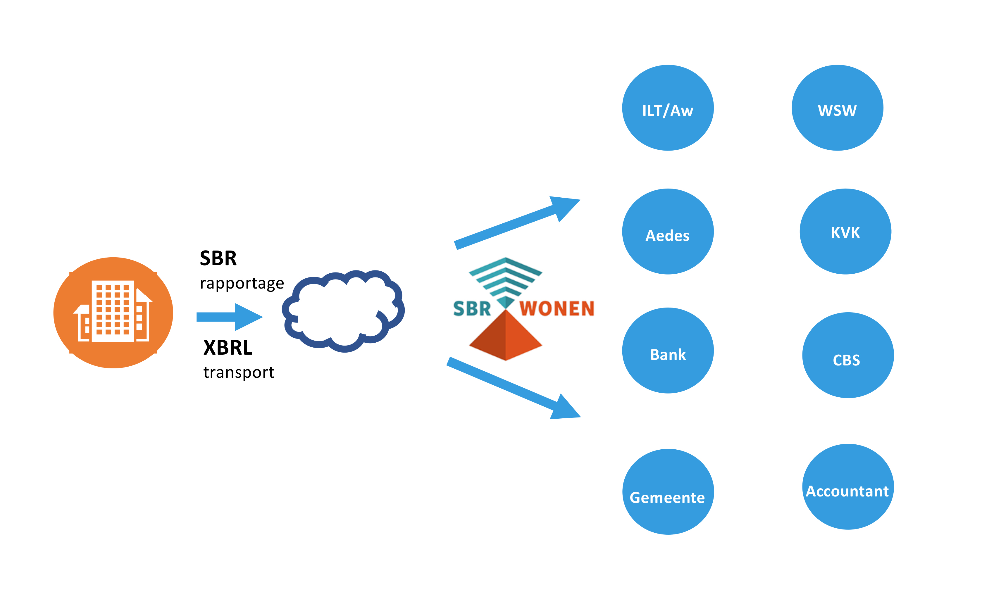 Waar tot nu toe iedere informatie-vragende partij direct vanuit de corporatie bediend werd, hoeft de standaard aanlevering straks maar eenmaal aan SBR Wonen plaats te vinden waarna zij de verdere distributie en formattering verzorgen. SBR Wonen heeft dit opgezet en beheert de portal voor de aanlevering. Om de data op de plaats van bestemming te krijgen, SBR-Wonen in dit geval, moeten zender en ontvanger dezelfde taal gebruiken. Hier is voor de internationale standaard XBRL gekozen.
