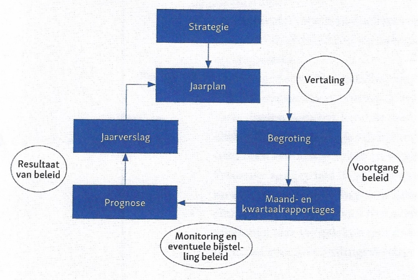 In de planning – en control cyclus kijkt het bestuur enerzijds vooruit naar de komende jaren (de stip op de horizon) en evalueert het bestuur anderzijds de verschillen tussen de plannen van het lopende jaar en de gerealiseerde plannen. Waar nodig formuleert het bestuur acties om bij te sturen (Plan-Do-Check-Act).