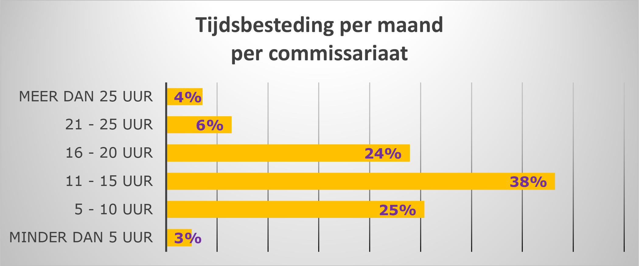 Meer dan 95% van de commissarissen geeft in 2021 aan niet meer dan gemiddeld 25 uur per maand te besteden aan werkzaamheden i.v.m. zijn of haar toezichthoudende functie.