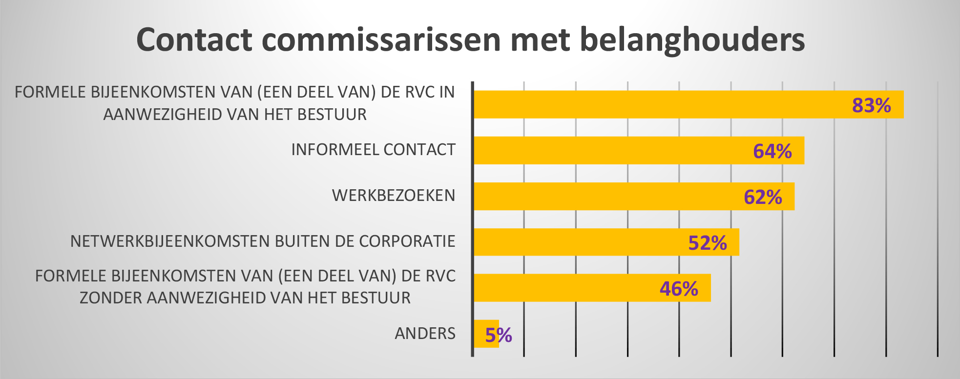 De commissarissen hebben vooral contact met belanghouders doormiddel van formele bijeenkomsten (82%).24